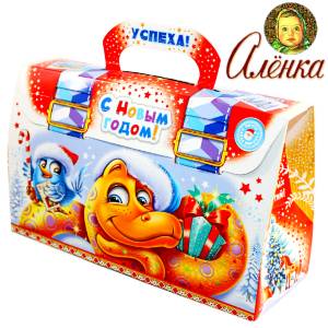 Яркая упаковка наполнена вкусными конфетами от знаменитой фабрики Красный Октябрь и лучшими сладостями от Алёнки.