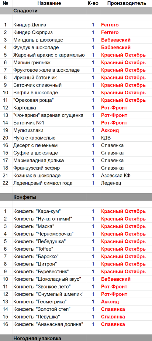 1. Проверить, можно ли внести изменения в состав подарка. Если нет, то скорее всего наборы были собраны еще летом из конфет, произведенных еще раньше